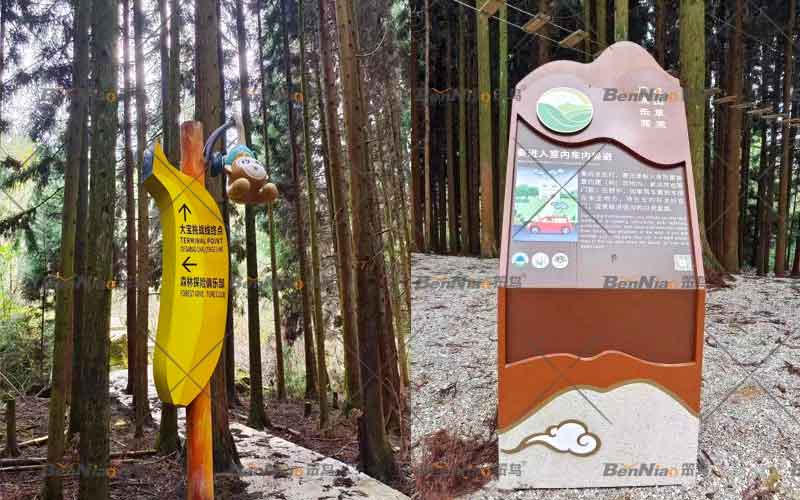 在導(dǎo)向標(biāo)識(shí)方面,笨鳥(niǎo)文旅充分從高度和造型方面進(jìn)行考慮,為兒童指引正確的方向,并且符合兒童的視覺(jué)審美,營(yíng)造自然輕松的氛圍,打造活潑童趣的游憩環(huán)境。