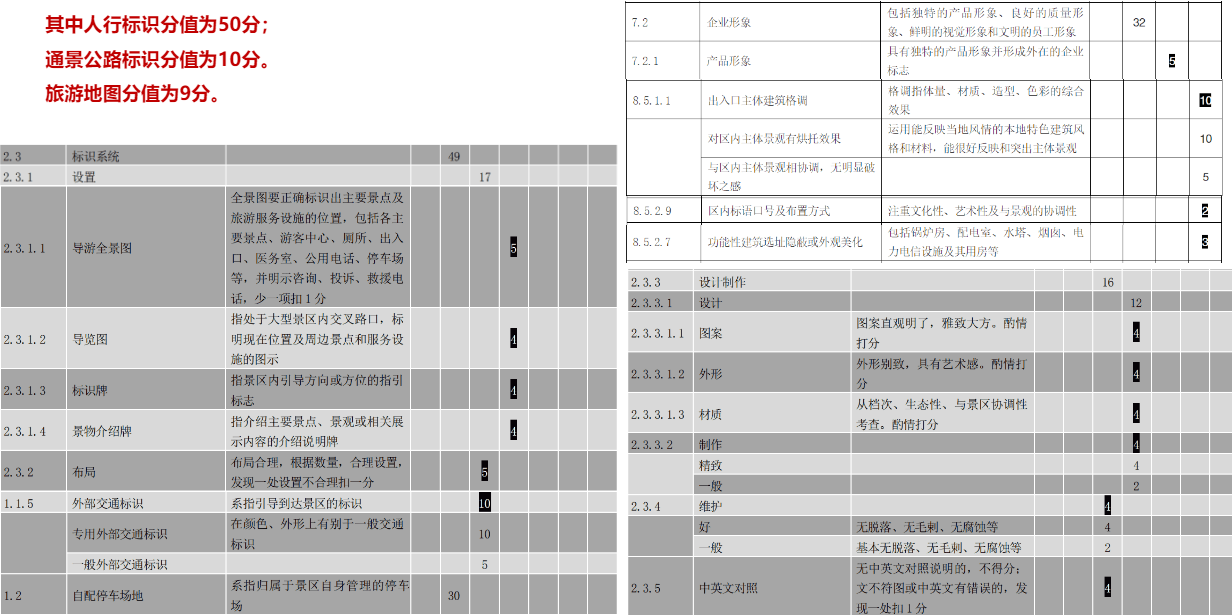 達到850分。其中人行標識分值為50分;通景公路標識分值為10分。旅游地圖分值為9分。
