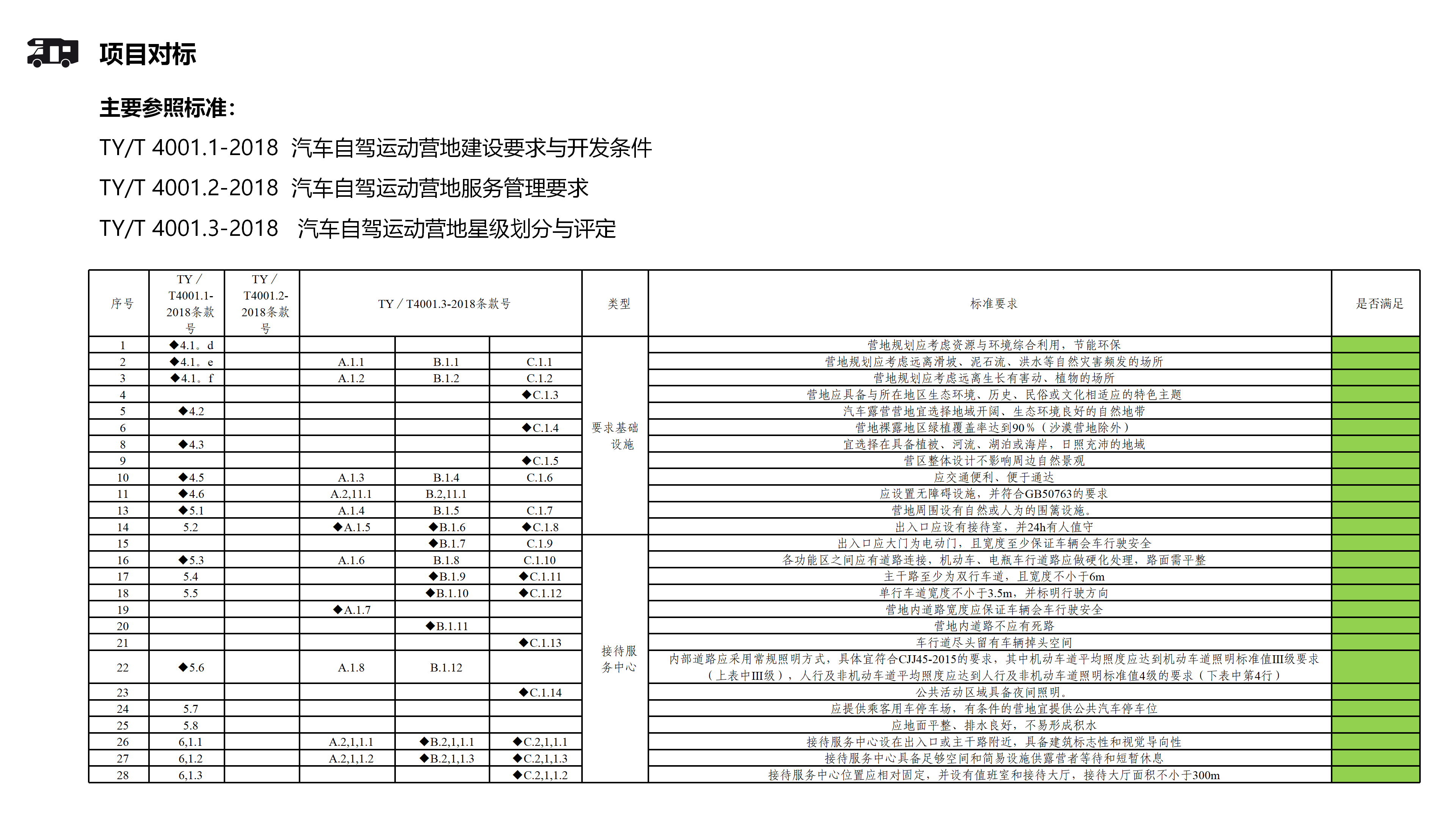 根據(jù)行業(yè)標準,汽車自駕運動營地的建設(shè)需要滿足一定的要求。其中,標識系統(tǒng)需要具備系統(tǒng)性、規(guī)范性和實用性,以確保游客能夠方便地找到和使用各種設(shè)施。在實地調(diào)研的過程中,嚴格對標行業(yè)標準,查漏補缺。