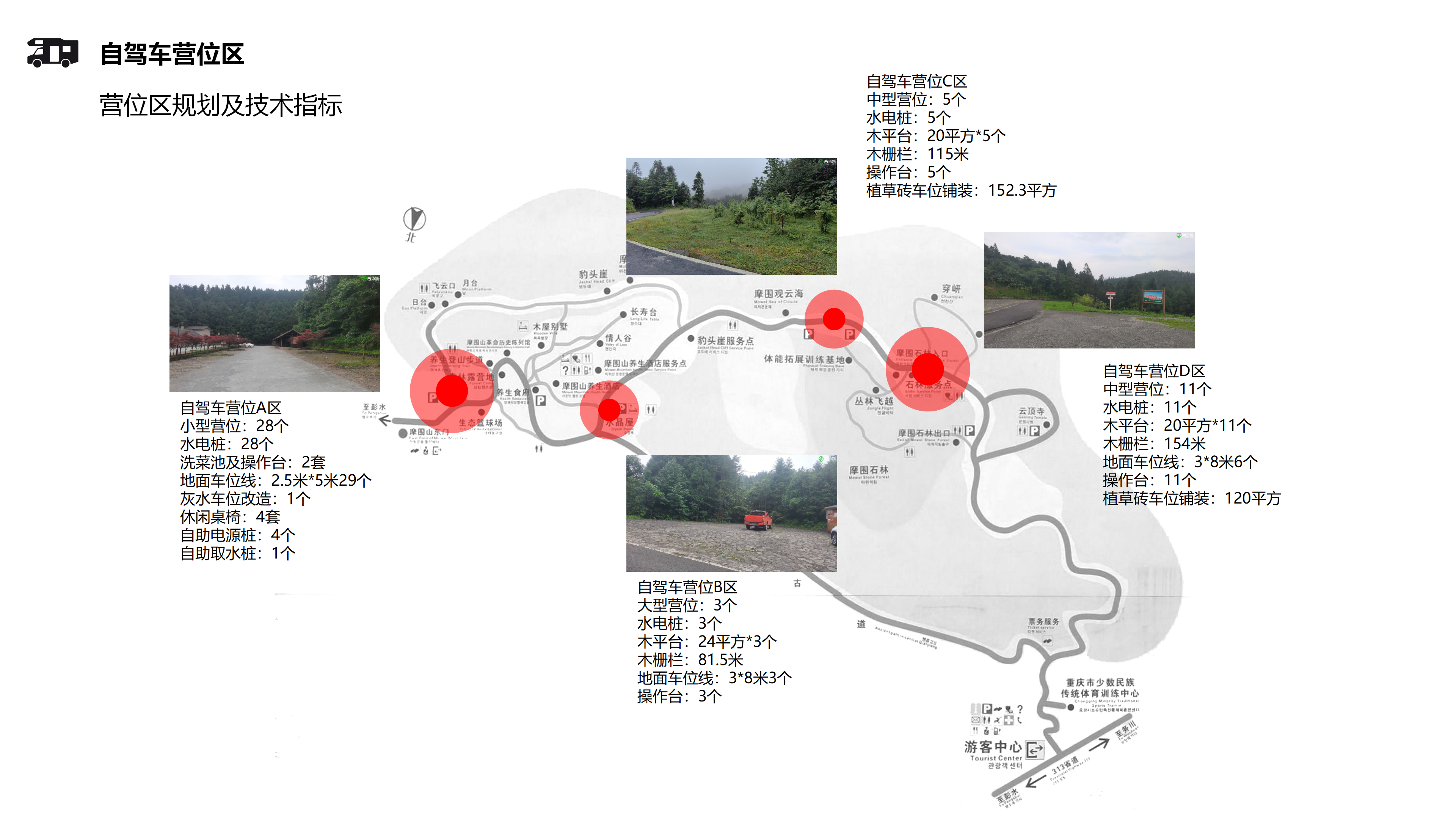 設(shè)置詳細的地圖和路線指引,幫助游客輕松找到營地內(nèi)的各個區(qū)域,包括自駕營地當中涉及的區(qū)位如自駕車泊位。露營區(qū)、娛樂設(shè)施等信息。
