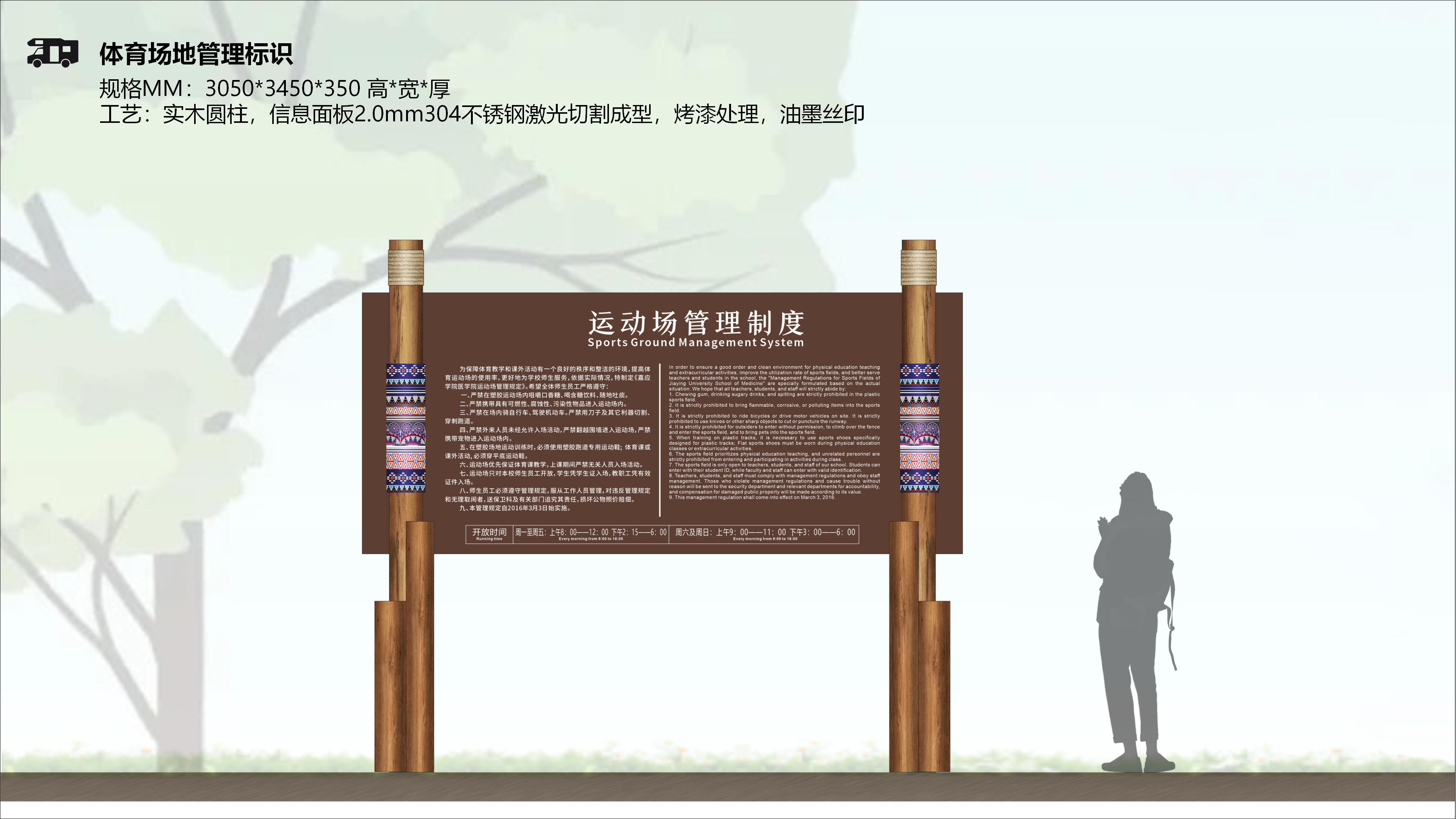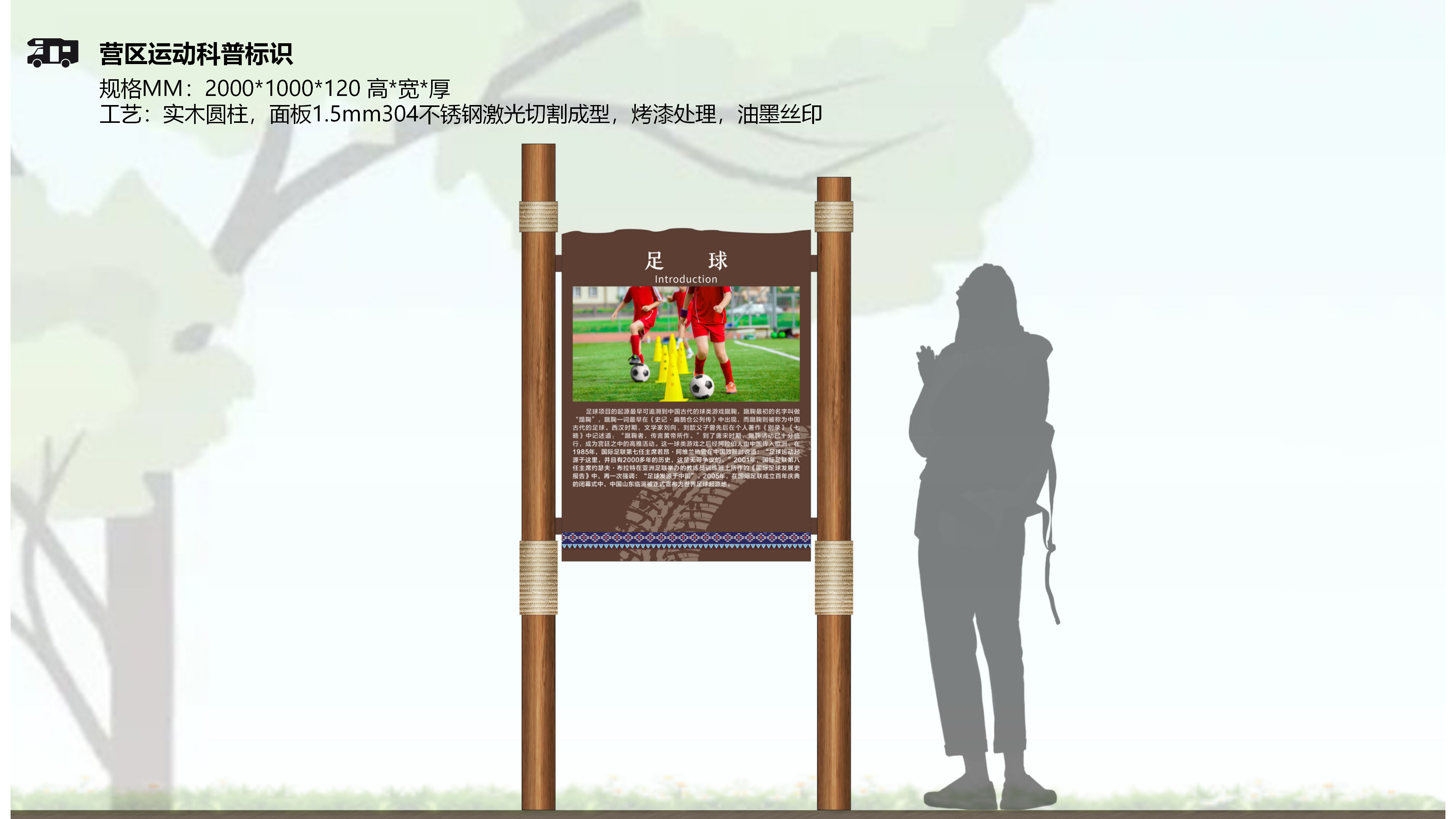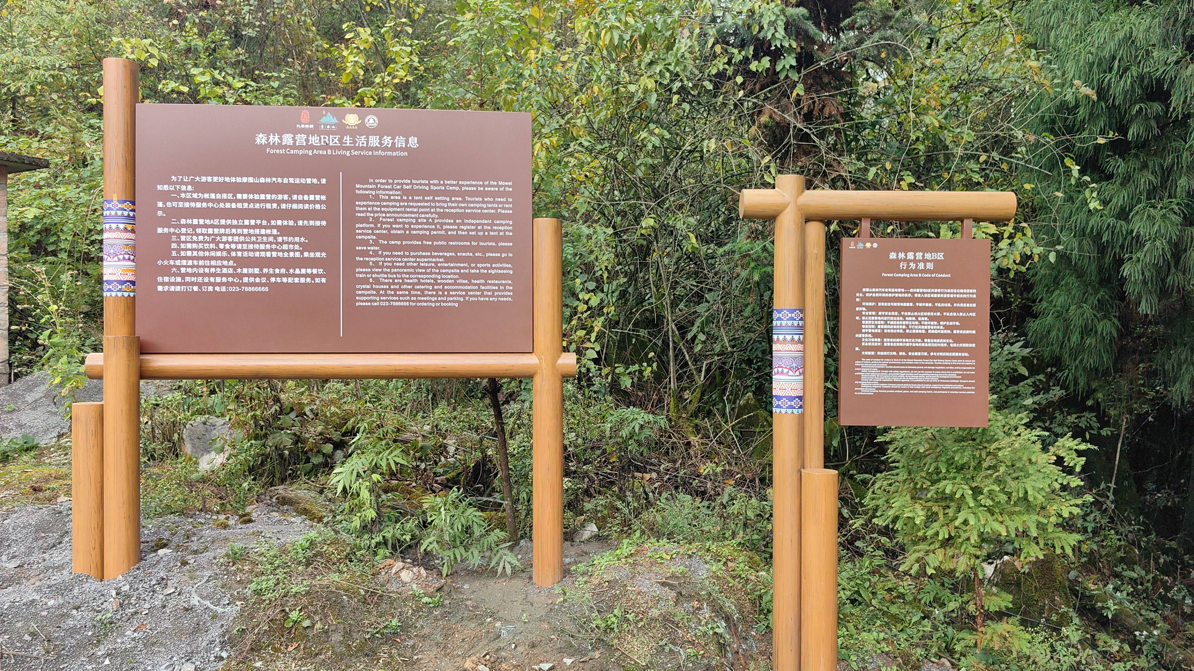 摩圍山森林汽車自駕運動營地有著豐富的旅游業(yè)態(tài),因此結(jié)合相關(guān)旅游信息,在標識系統(tǒng)中要設(shè)置景點介紹,體育設(shè)施科普及相關(guān)活動安排,讓游客能夠更好的規(guī)劃自己的行程。
