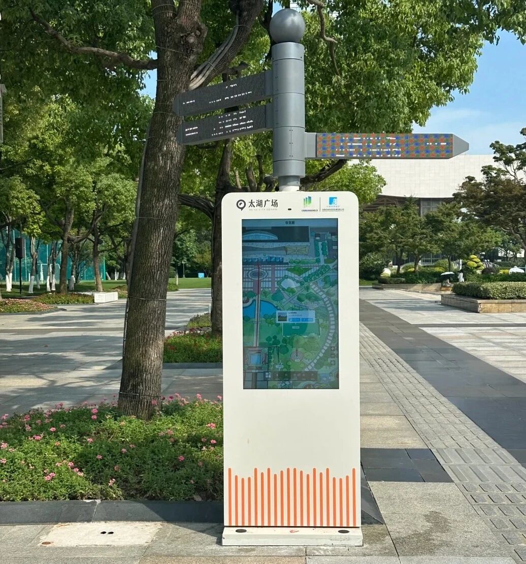 設(shè)置中型指向屏或互動(dòng)查詢機(jī)提供方向指引、距離提示,并實(shí)時(shí)顯示前方景點(diǎn)或設(shè)施的當(dāng)前人流情況、預(yù)計(jì)步行時(shí)間,幫助游客決策。