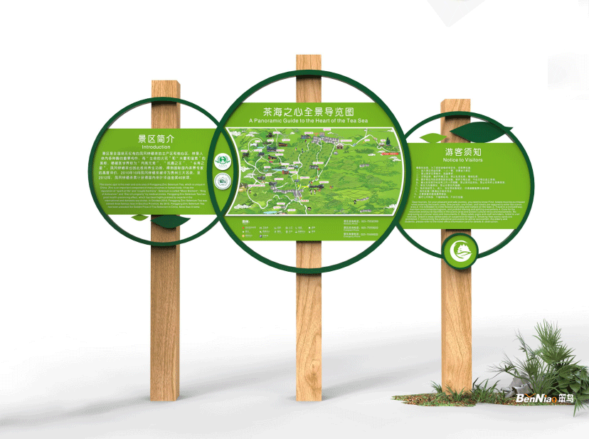 風(fēng)景名勝區(qū)標(biāo)志系統(tǒng)的主要作用是對(duì)風(fēng)景名勝區(qū)進(jìn)行開(kāi)發(fā)、利用和管理,使之發(fā)揮多種功能和作用,對(duì)風(fēng)景名勝區(qū)的形象要素進(jìn)行統(tǒng)籌和具體安排。景區(qū)標(biāo)識(shí)牌進(jìn)行高質(zhì)素的梳理,營(yíng)造和諧旅游休閑環(huán)境,為游客提供人性化服務(wù),促進(jìn)景區(qū)可持續(xù)、健康、穩(wěn)定的發(fā)展。