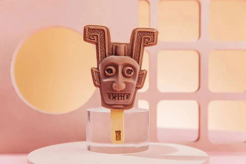 “與博物館合作是商業(yè)共贏,而講好文物背后的故事是我們和博物館共同的追求。”趙丹在介紹公司與博物館合作開發(fā)的文創(chuàng)雪糕時(shí)說道:“國博的東漢擊鼓說唱俑雪糕,幾乎能看到文物的所有細(xì)節(jié)。左臂環(huán)抱一個(gè)扁鼓,右手舉槌好像要擊鼓,笑容滿面,神態(tài)輕松詼諧,惟妙惟肖地重現(xiàn)了俳優(yōu)正在說唱的形象?!薄叭绻f唱俑雪糕更多的是展現(xiàn)造型的精美,那么中國歷史研究院的銅犧尊雪糕,則是想向消費(fèi)者傳遞‘金色是古代青銅器的原色,出土?xí)r呈青綠色才被叫作青銅器’這樣的歷史小知識。因此在制作雪糕時(shí),把雪糕的口味定成了代表原色金的‘黃桃’和代表出土綠的‘哈密瓜’口味”。