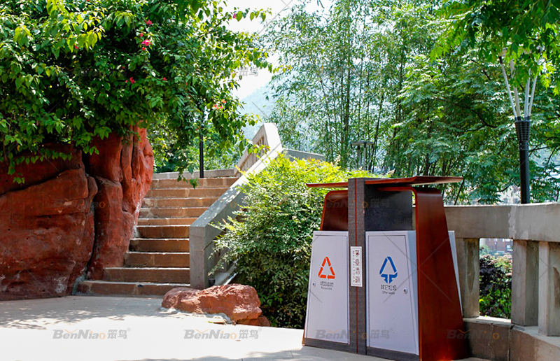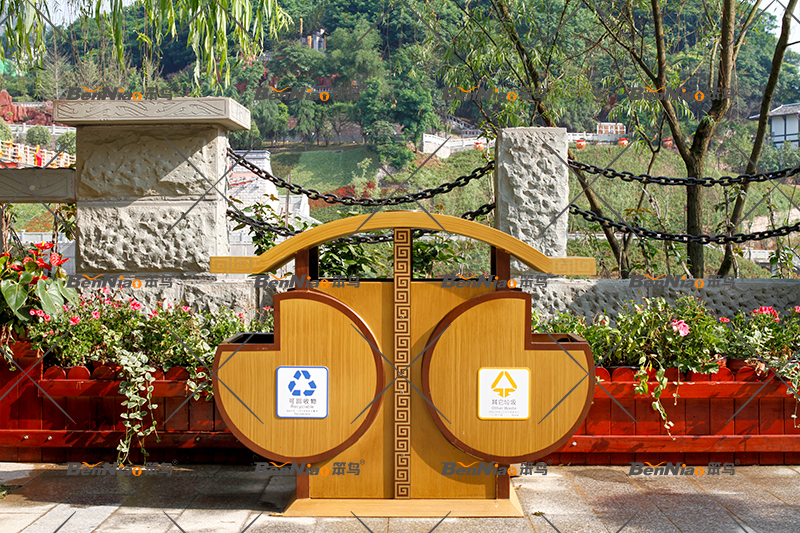 2、景區(qū)垃圾桶,垃圾桶是旅游景區(qū)不可缺少的公共設(shè)施,旅游景區(qū)垃圾桶的設(shè)計(jì)既要考慮科學(xué)性、實(shí)用性也要考慮審美性??茖W(xué)與實(shí)用性體現(xiàn)在既方便游客丟垃圾,又方便清潔工人清理垃圾。垃圾桶的外觀可以根據(jù)景區(qū)的地理位置、環(huán)境特點(diǎn)來設(shè)計(jì)。