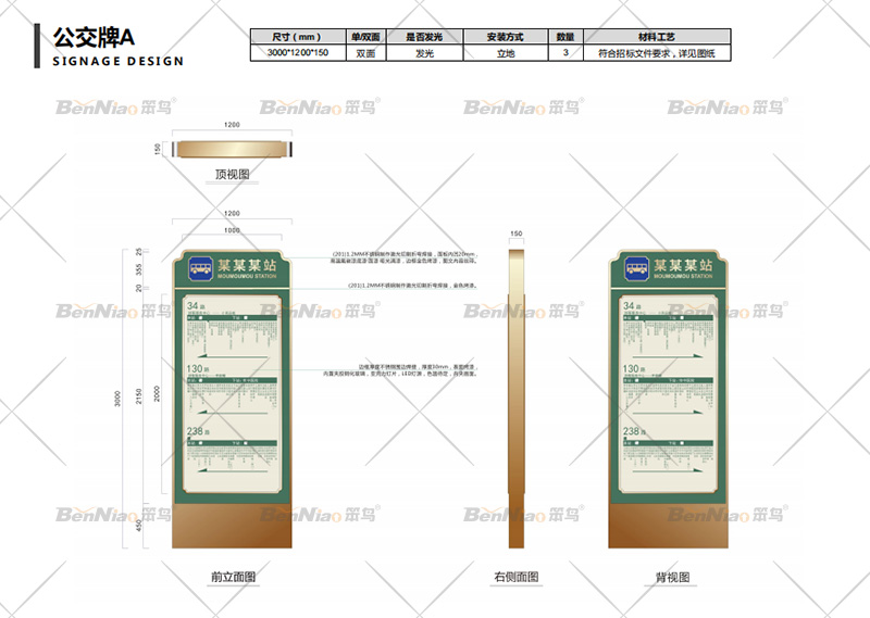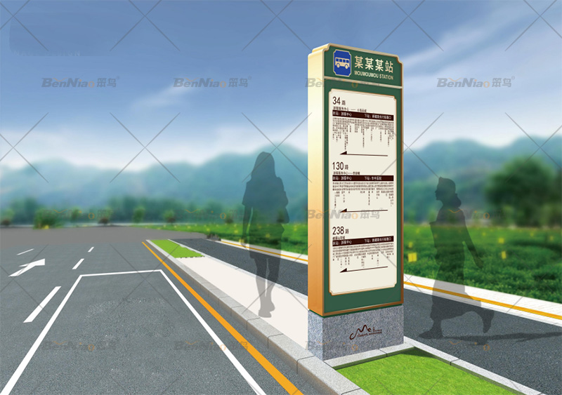 站牌設(shè)計(jì):站牌主要是向乘客提供和傳達(dá)公交交通車輛的信息,讓乘客更容易更快捷的找到自己所需要乘坐的車輛,所以在設(shè)計(jì)時(shí)通常要考慮到站牌上字體顏色、大小、車次數(shù)量、車次方向以及夜間站牌照明情況。