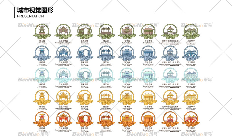 城市視覺(jué)圖形是城市視覺(jué)形象的核心,是城市內(nèi)涵意義的主要視覺(jué)載體,它可以直觀(guān)地反映出城市的視覺(jué)識(shí)別特征,將抽象的城市內(nèi)涵與精神以視覺(jué)的方式呈現(xiàn)出,濃縮成為城市的標(biāo)志或象征物為公眾所認(rèn)知。笨鳥(niǎo)視覺(jué)設(shè)計(jì)師通過(guò)對(duì)云陽(yáng)縣獨(dú)特的歷史文化、自然文化和地標(biāo)性建筑的提煉,使其圖形化,擴(kuò)大設(shè)計(jì)語(yǔ)言的豐富性,展現(xiàn)云陽(yáng)地理信息文化,從而借此契機(jī)盡早的統(tǒng)一城市形象,打造云陽(yáng)自身特色品牌。并將帶有濃郁特色標(biāo)志性圖案應(yīng)用到云陽(yáng)縣城市環(huán)境中去,服務(wù)于云陽(yáng)縣的城市發(fā)展,豐富其文化。