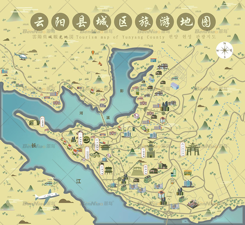 將云陽(yáng)縣具有特色的標(biāo)志性圖標(biāo)運(yùn)用到手繪地圖中,可通過(guò)更具人文內(nèi)涵與親和力的空間表現(xiàn)手法,在立體視角中呈現(xiàn)出特定地點(diǎn)獨(dú)有的文化魅力和個(gè)性色彩。云陽(yáng)縣手繪地圖不僅僅是標(biāo)注的坐標(biāo),更多的是賦予了云陽(yáng)縣人性化的靈魂。