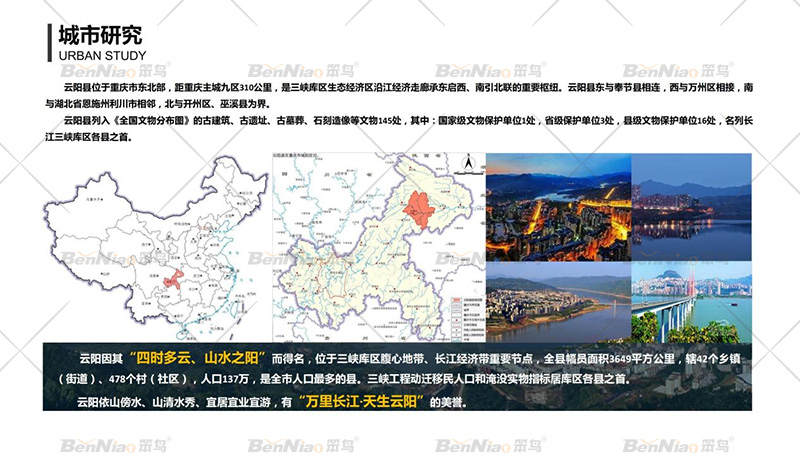笨鳥(niǎo)文旅將從城市品牌形象的五個(gè)視角去設(shè)計(jì)專(zhuān)屬云陽(yáng)縣的城市品牌符號(hào):一、資源視角的城市品牌形象;二、產(chǎn)品品牌視角的城市品牌形象;三、文化視角的城市品牌形象;四、產(chǎn)業(yè)視角的城市品牌形象;五、營(yíng)銷(xiāo)視角的城市品牌形象。綜合以上的五個(gè)視角為云陽(yáng)縣打造成具有獨(dú)特性的旅游名片,從而優(yōu)化旅游發(fā)展格局,強(qiáng)化旅游宣傳力度。