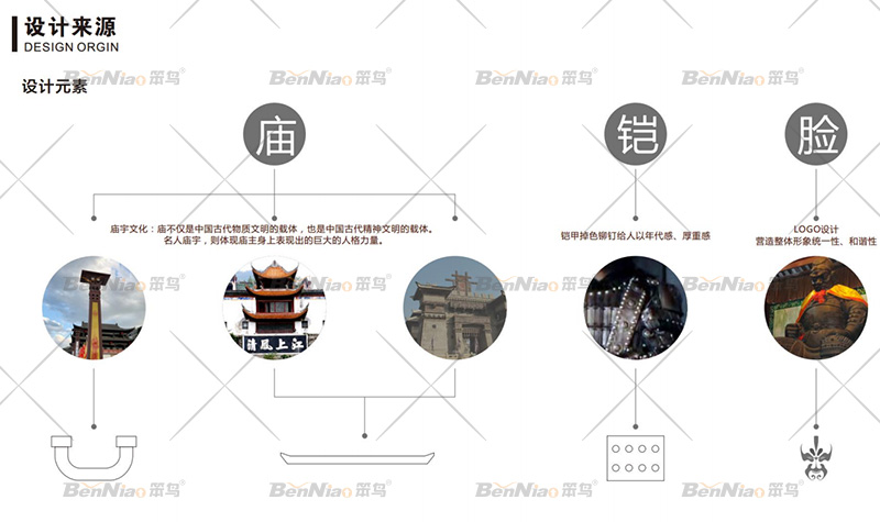 在張飛廟景區(qū)導(dǎo)視設(shè)計(jì)元素中,抓取蜀漢三國(guó)張飛歷史、金戈鐵馬以及具有1700多年的廟宇文化作為整個(gè)設(shè)計(jì)的主要視覺元素進(jìn)行提煉,對(duì)于景區(qū)和商業(yè)區(qū)空間以整體風(fēng)格統(tǒng)一,局部區(qū)分展示。