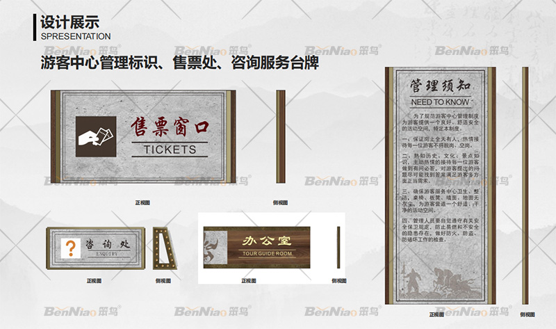 通過前期對(duì)云陽張飛廟景區(qū)的實(shí)地勘察,在設(shè)計(jì)導(dǎo)視系統(tǒng)時(shí)我們首先考慮到了它的文化屬性,其次是云陽景區(qū)導(dǎo)視系統(tǒng)進(jìn)行分類,按照功能性來分設(shè)計(jì)了主題標(biāo)識(shí)、區(qū)域?qū)в[標(biāo)識(shí)、景點(diǎn)介紹一級(jí)二級(jí)標(biāo)識(shí)、景區(qū)導(dǎo)向標(biāo)識(shí)一級(jí)二級(jí)等標(biāo)識(shí)且確定了景區(qū)各類標(biāo)識(shí)的數(shù)量,這對(duì)我們整個(gè)景區(qū)的導(dǎo)視系統(tǒng)有個(gè)整體的把控。最后在文件深化時(shí)我們的設(shè)計(jì)師又充分考慮到整個(gè)景區(qū)導(dǎo)視系統(tǒng)的造型、色彩、尺度、預(yù)埋方式以及內(nèi)容規(guī)范性等因素。做到云陽張飛廟旅游景區(qū)的導(dǎo)視系統(tǒng)有其獨(dú)特性,這種獨(dú)特性是完全屬于它所在的旅游景區(qū)并融入景區(qū)環(huán)境中。