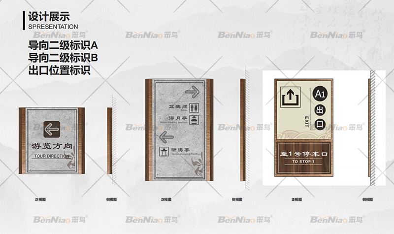 笨鳥從整體上梳理構(gòu)建標(biāo)識(shí)體系,合理規(guī)劃點(diǎn)位布局,完善標(biāo)識(shí)指示信息,統(tǒng)一標(biāo)識(shí)設(shè)計(jì)風(fēng)格。設(shè)計(jì)了停車指示標(biāo)識(shí)、導(dǎo)向一級(jí)二級(jí)標(biāo)識(shí)、溫馨提示標(biāo)識(shí)等。