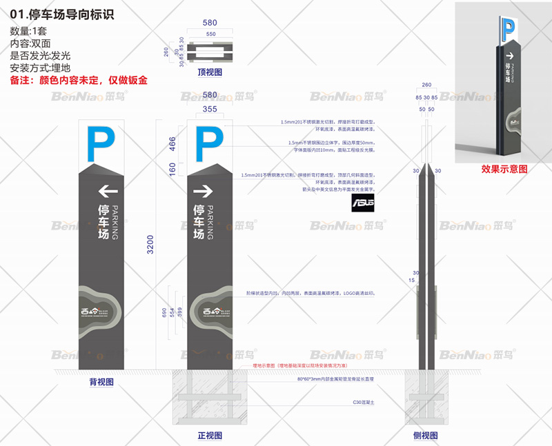 西嶺雪山.花水灣旅游度假區(qū)停車場(chǎng)導(dǎo)向標(biāo)識(shí)設(shè)計(jì)(效果圖)