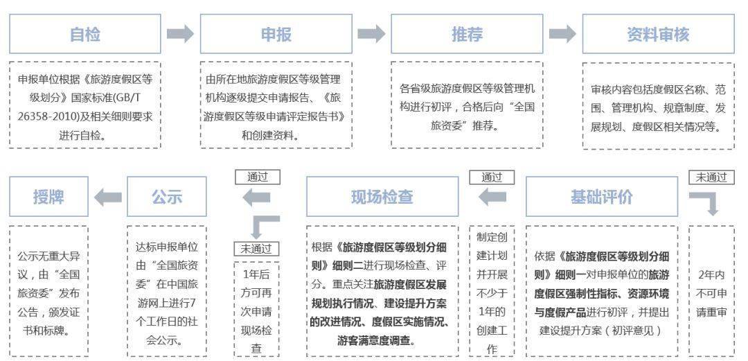國(guó)家級(jí)旅游度假區(qū)引領(lǐng)休閑度假旅游的發(fā)展,其評(píng)定標(biāo)準(zhǔn)為行業(yè)制定了發(fā)展規(guī)范,促進(jìn)高品質(zhì)產(chǎn)品豐富國(guó)內(nèi)度假市場(chǎng)?!堵糜味燃賲^(qū)等級(jí)劃分》國(guó)家標(biāo)準(zhǔn)(GB/T 26358-2010) 《國(guó)家旅游局關(guān)于開展國(guó)家級(jí)旅游度假區(qū)評(píng)定工作的通知》《旅游度假區(qū)等級(jí)管理辦法》《旅游度假區(qū)等級(jí)劃分細(xì)則》(2015年5月) 。國(guó)務(wù)院旅游主管部門委托“全國(guó)旅游資源規(guī)劃開發(fā)質(zhì)量評(píng)定委員會(huì)”(以下簡(jiǎn)稱“全國(guó)旅資委”),具體負(fù)責(zé)國(guó)家級(jí)旅游度假區(qū)等級(jí)管理工作的組織和評(píng)審,授權(quán)并督導(dǎo)省級(jí)旅游度假區(qū)等級(jí)管理機(jī)構(gòu)開展評(píng)審工作。國(guó)家級(jí)旅游度假區(qū)基礎(chǔ)評(píng)價(jià)和現(xiàn)場(chǎng)檢查環(huán)節(jié)的評(píng)審由“全國(guó)旅資委”負(fù)責(zé)組織相關(guān)行業(yè)專家組成評(píng)審委員會(huì)進(jìn)行評(píng)審程序。