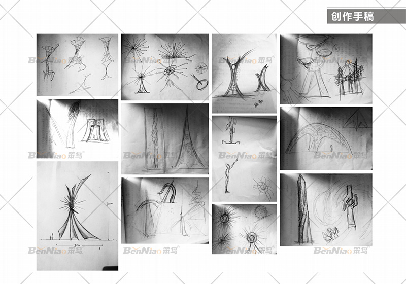 設(shè)計說明:雕塑由抽象的幾何形華表為載體,華表實際上已經(jīng)與中華民族、中國古老的文化緊密相連,從某種程度上也可以說是我們民族的一種標(biāo)志。用現(xiàn)代抽象的手法材料體現(xiàn)出全球最大的貴州平塘球面射電望遠(yuǎn)鏡在未來宇宙空間探索中的開拓與指向作用,以此代表展望平塘球面射電望遠(yuǎn)鏡在我國全球乃至人類的歷史上走出新的輝煌篇章。