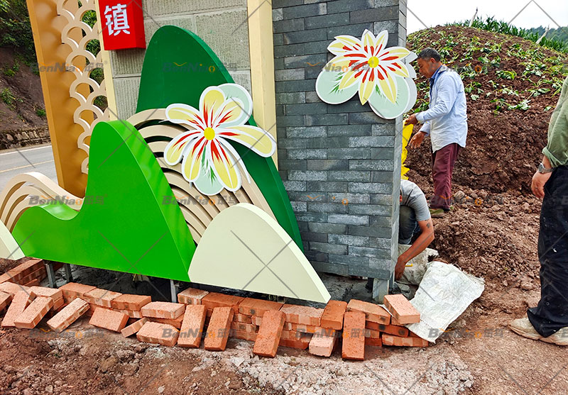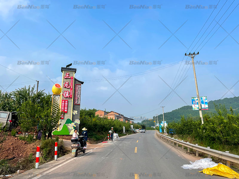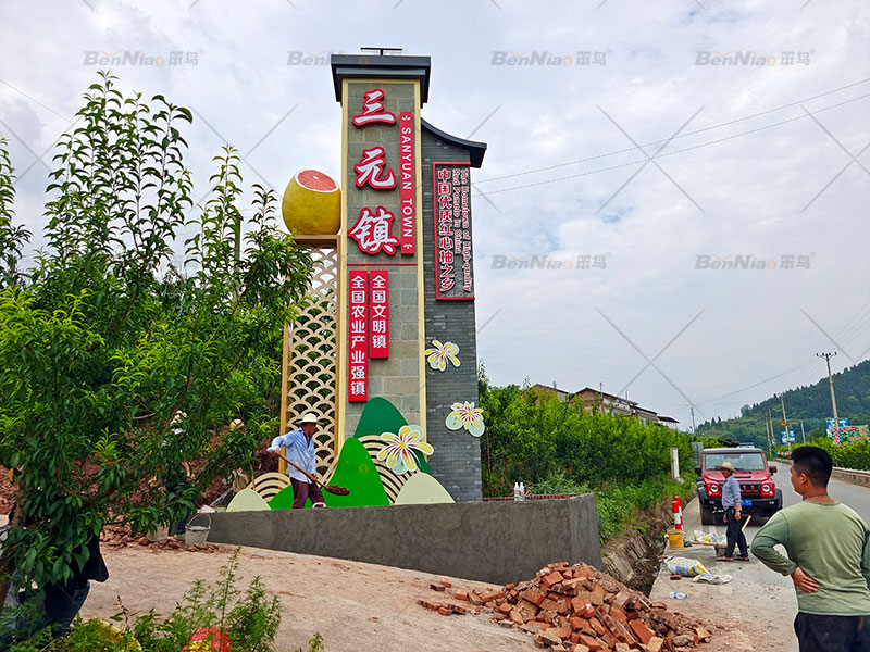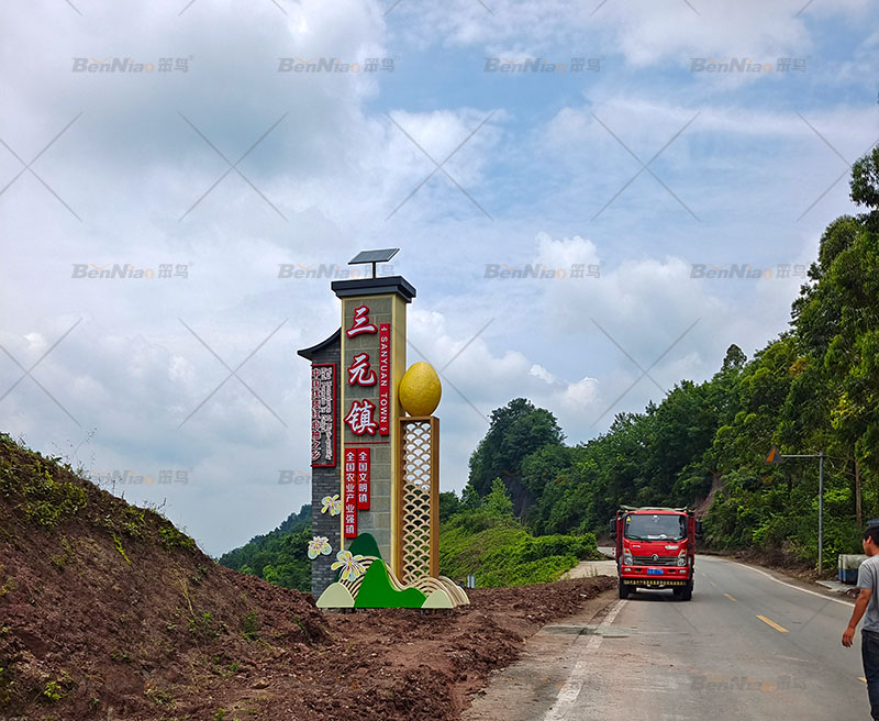 笨鳥文旅結(jié)合三元鎮(zhèn)道路交通實際現(xiàn)狀,沿著交通干道規(guī)劃、設(shè)計、制作、安裝了“產(chǎn)業(yè)精神堡壘、產(chǎn)業(yè)信息牌”等設(shè)施,大多采用簡約風(fēng)格,統(tǒng)一主色調(diào)和設(shè)計式樣,整體效果與村情、村容、村貌、村景融為一體,相得益彰,為三元鎮(zhèn)增添一道道美麗風(fēng)景線。