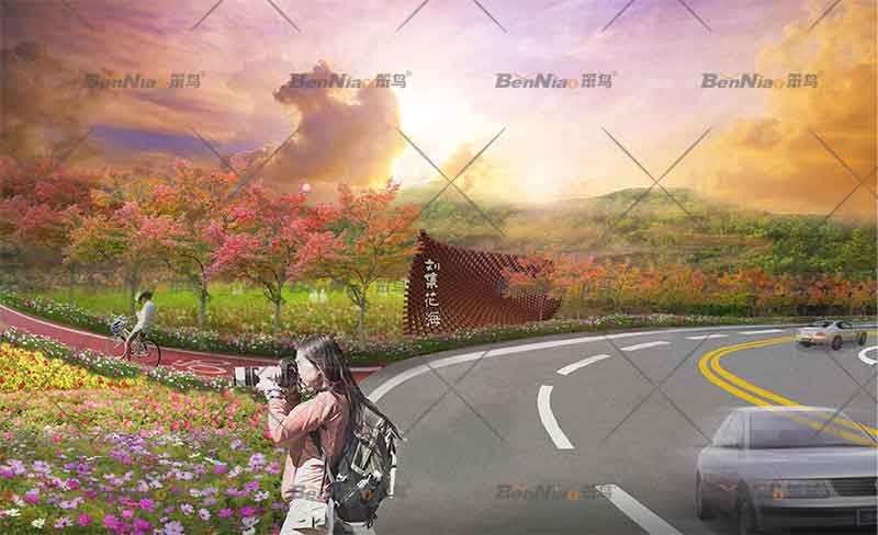 項目介紹:項目基于沭陽縣的花木產(chǎn)業(yè),以S324/S245為交通線,串聯(lián)各節(jié)點,圍繞“花木生態(tài)休閑”“文化創(chuàng)新體驗”兩大主題特色,挖掘縣域文化旅游融合新動力,設(shè)置景觀小品、精神堡壘,打造中國最絢麗的中國花木之鄉(xiāng)。