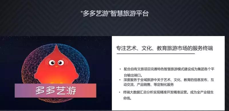 最后還提到了多多藝游智慧旅游平臺(tái),是一種專(zhuān)注藝術(shù)、文化、教育旅游市場(chǎng)的服務(wù)終端,深度服務(wù)于全球旅游中關(guān)于藝術(shù)、文化、教育的信息發(fā)布,具備互動(dòng)交流,產(chǎn)品銷(xiāo)售,定制化服務(wù)等功能,能夠?qū)崿F(xiàn)終端大數(shù)據(jù)匯總分析實(shí)現(xiàn)精準(zhǔn)開(kāi)發(fā)精準(zhǔn)運(yùn)營(yíng)的旅游平臺(tái)。