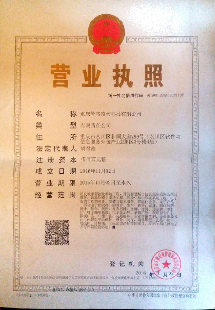 重慶笨鳥凌天科技有限公司成立于2016年。