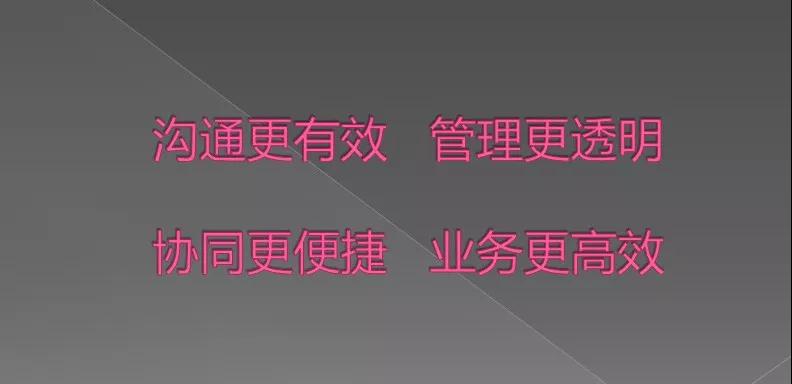 那么我們要把這種工作路徑通過簡化、在線、鏈接、賦能幸福這樣的工作方法達(dá)到我們最終想要的目標(biāo):溝通更有效、管理更透明、 協(xié)同更便捷、業(yè)務(wù)更高效,這是我們希望達(dá)到的目標(biāo)。