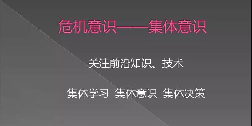 集體意識要有意識,這很重要。那么大家就要集體學(xué)習(xí),學(xué)習(xí)前沿的知識,學(xué)習(xí)前沿的技術(shù),學(xué)習(xí)前沿的思維和工作方法,這樣才能達(dá)到一個集體意識的基本面,只有在這樣的情況下你才能夠去參與集體決策。