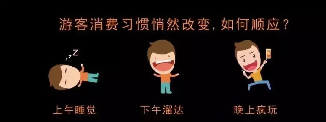 隨著越來越多新興群體觀念影響,不少游客的旅游作息時間發(fā)生了明顯的變化,夜晚時段成為最具休閑消費潛力的時段,特別是把旅游作為重點放松途徑的青年白領(lǐng)群體,“上午睡覺、下午溜達(dá)、晚上瘋玩”的模式已不在少數(shù),例如麗江、烏鎮(zhèn)這類潮流目的地,可能是市場的風(fēng)向標(biāo)。